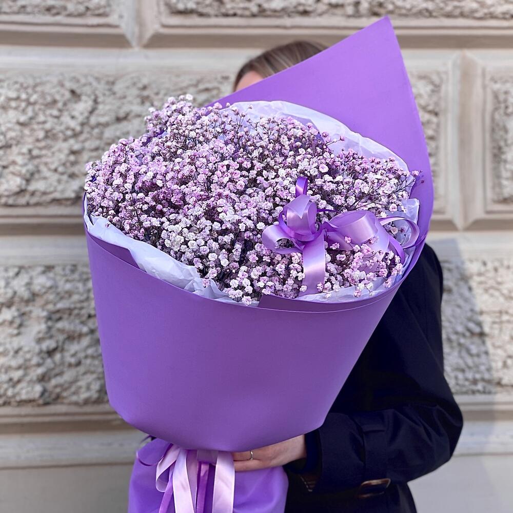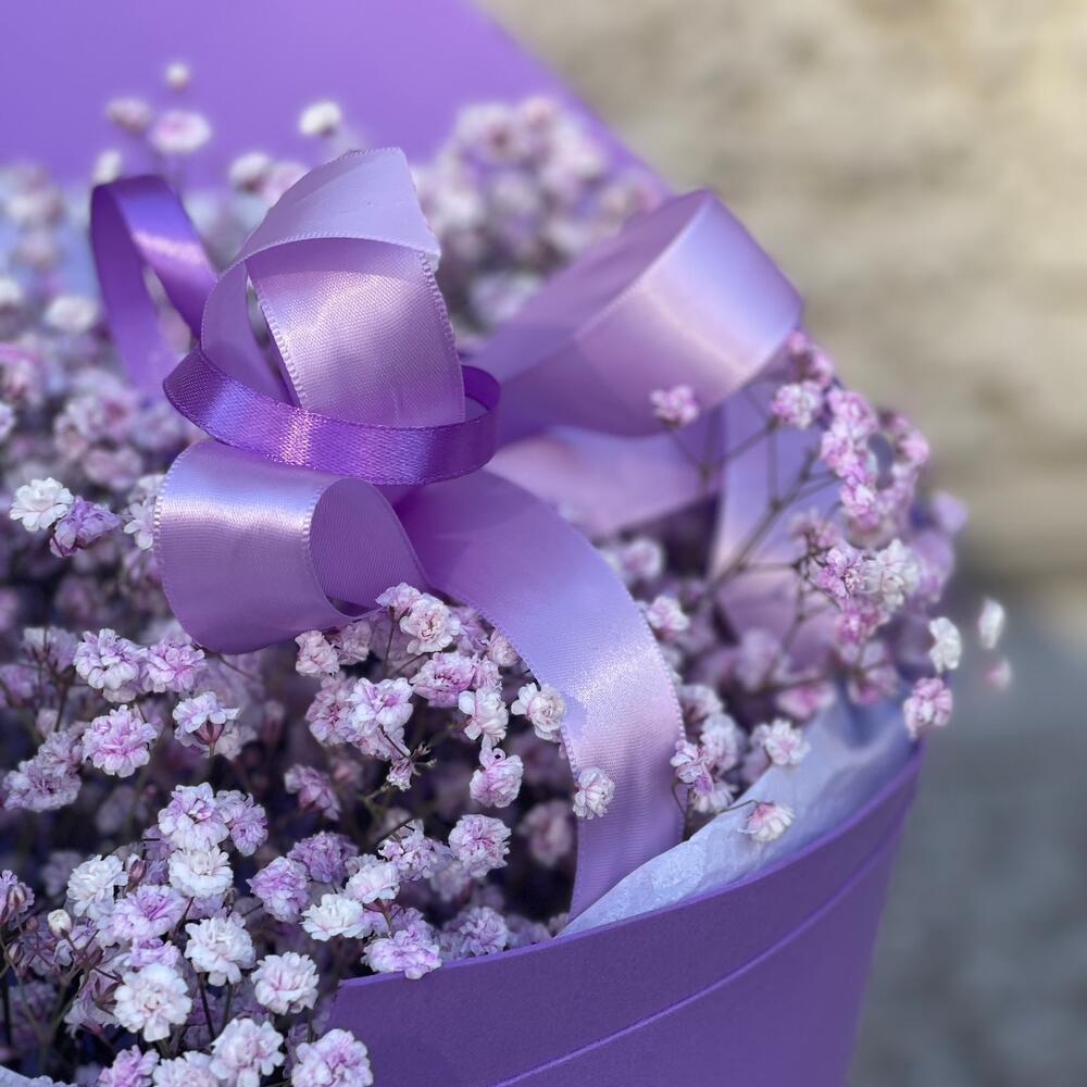 Гипсофила – 13 шт.Лента – 3 шт.Тишью – 3 шт.Упаковка дизайнерская – 1 шт.