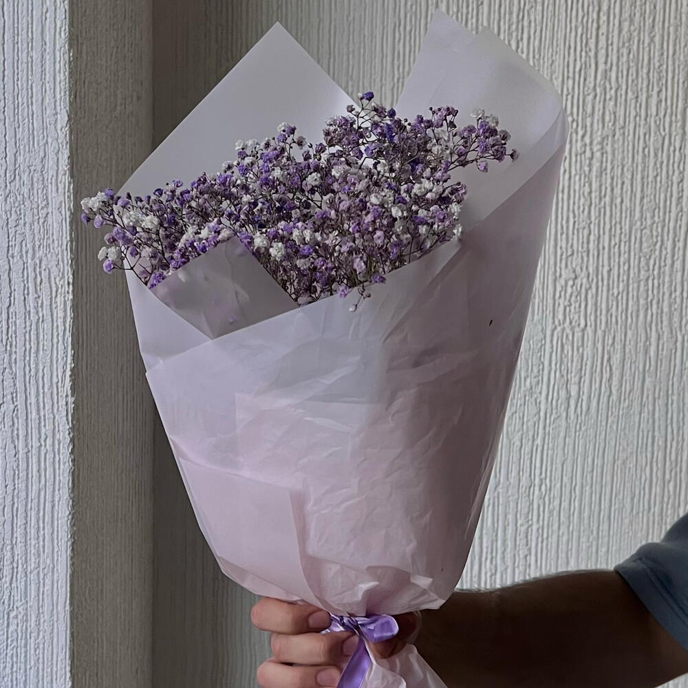 “Сиреневый туман” – композиция из гипсофилы в шляпной коробке