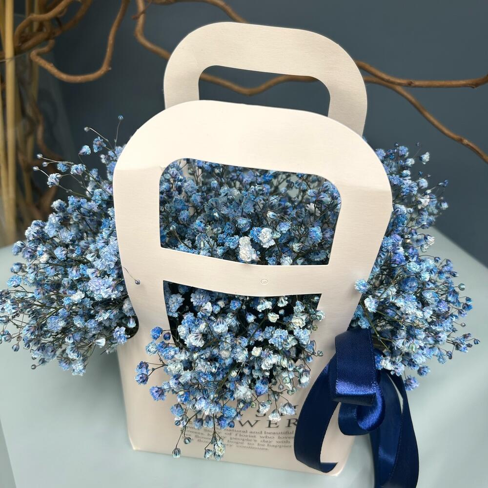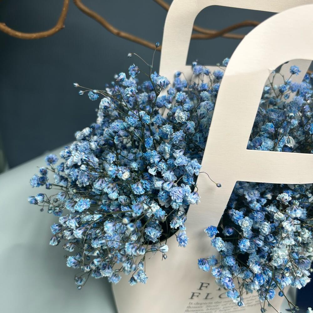 Гипсофила крашеная – 5 шт.Оазис флористический – 1 шт.Сумка крафт – 1 шт.Лента атласная – 1 шт.