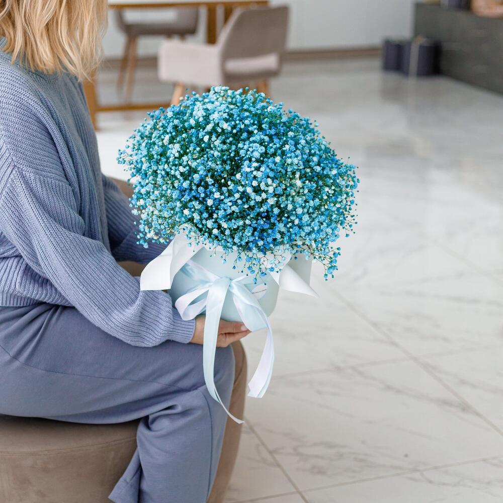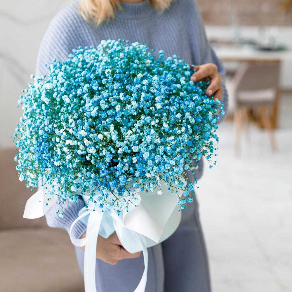 Голубое облачко гипсофилы в шляпной коробке