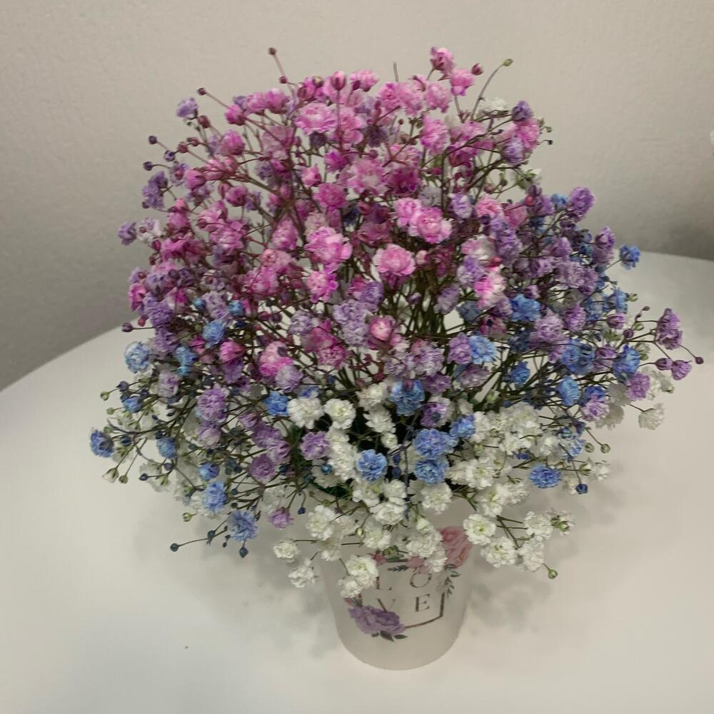 Комплимент из яркой гипсофилы в стаканчике «Счастье»