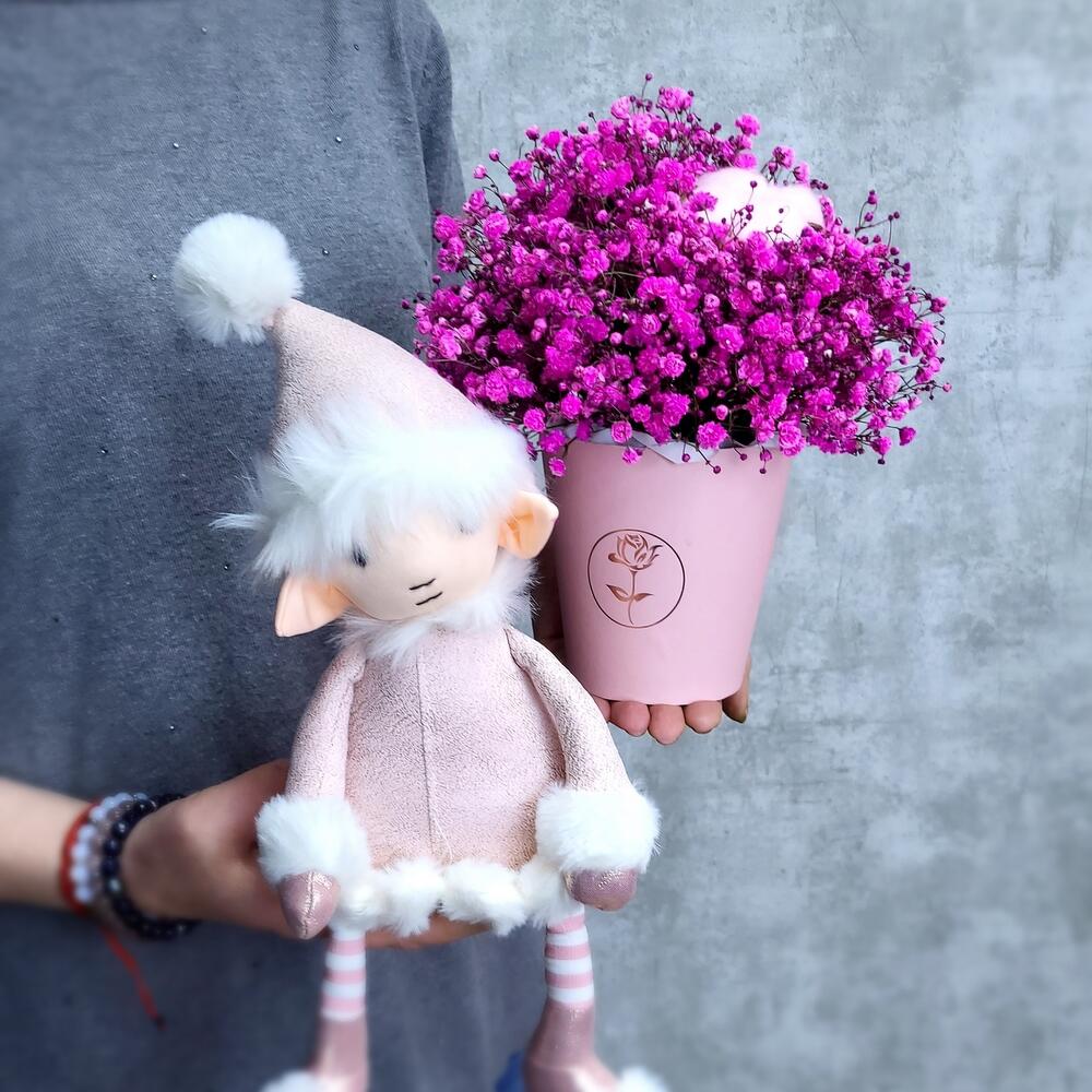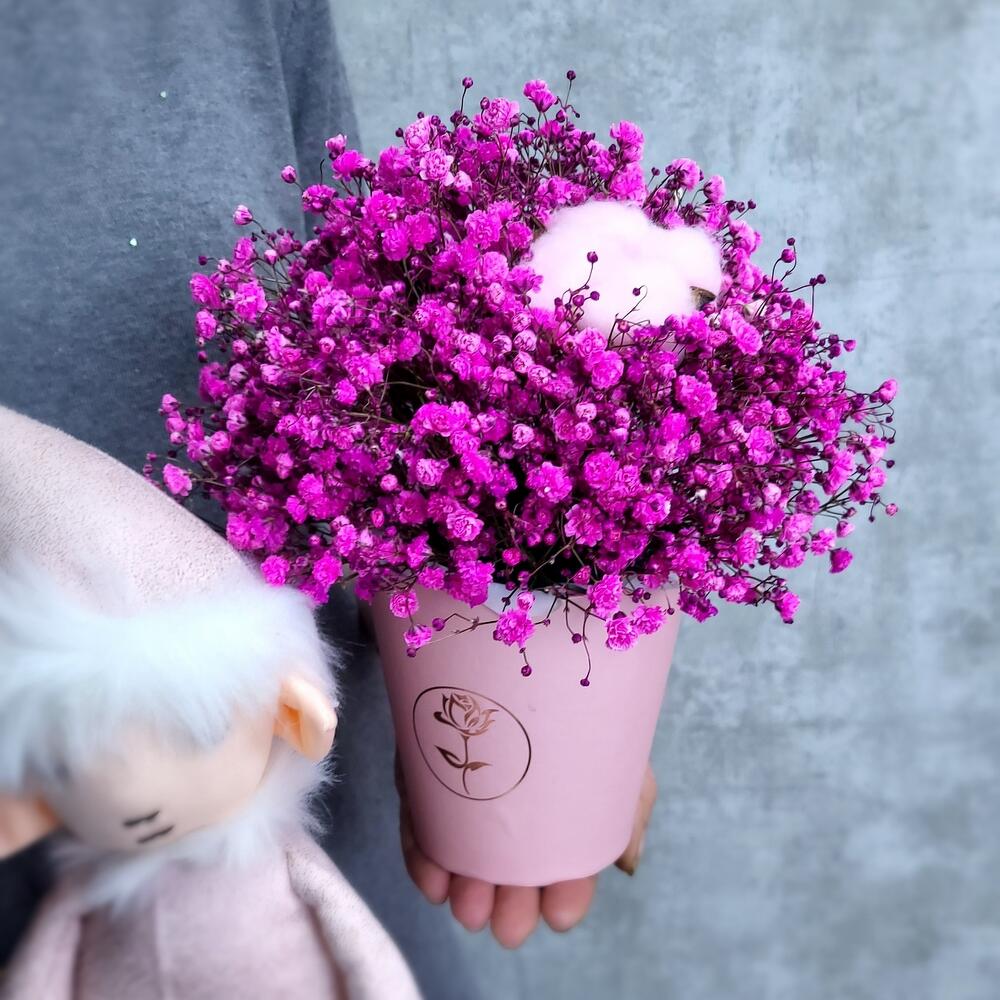 Гипсофила – 5 шт.Хлопок – 1 шт.Стакан – 1 шт.игрушка эльф – 1 шт.