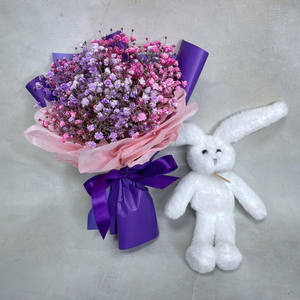 Гипсофила – 3 шт.Упаковка – 1 шт.игрушка зайчонок lapkin – 1 шт.Пакет крафт – 1 шт.
