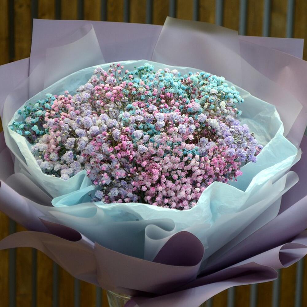 Красивый букет из 5 веточек разноцветной гипсофилы в шикарной упаковке.Нежнейшая гипсофила в роскошном многослойном оформлении – цветочная композиция, от которой веет весной, теплотой и душевностью. Разноцветные бутоны не оставят равнодушной ни одну получательницу такого презента. Благодаря пышности веточек растения, букет выглядит объемно и впечатляюще. Гипсофила прекрасна не только в свежем виде – даже после увядания она сможет стать украшением интерьера на долгие месяцы.В составе букета: гипсофила цветная 5 веточек, оригинальная упаковка букета.