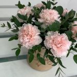 Эвкалипт – 2 шт.коробочка с оазисом – 1 шт.гвоздика кремовая диантус – 7 шт.