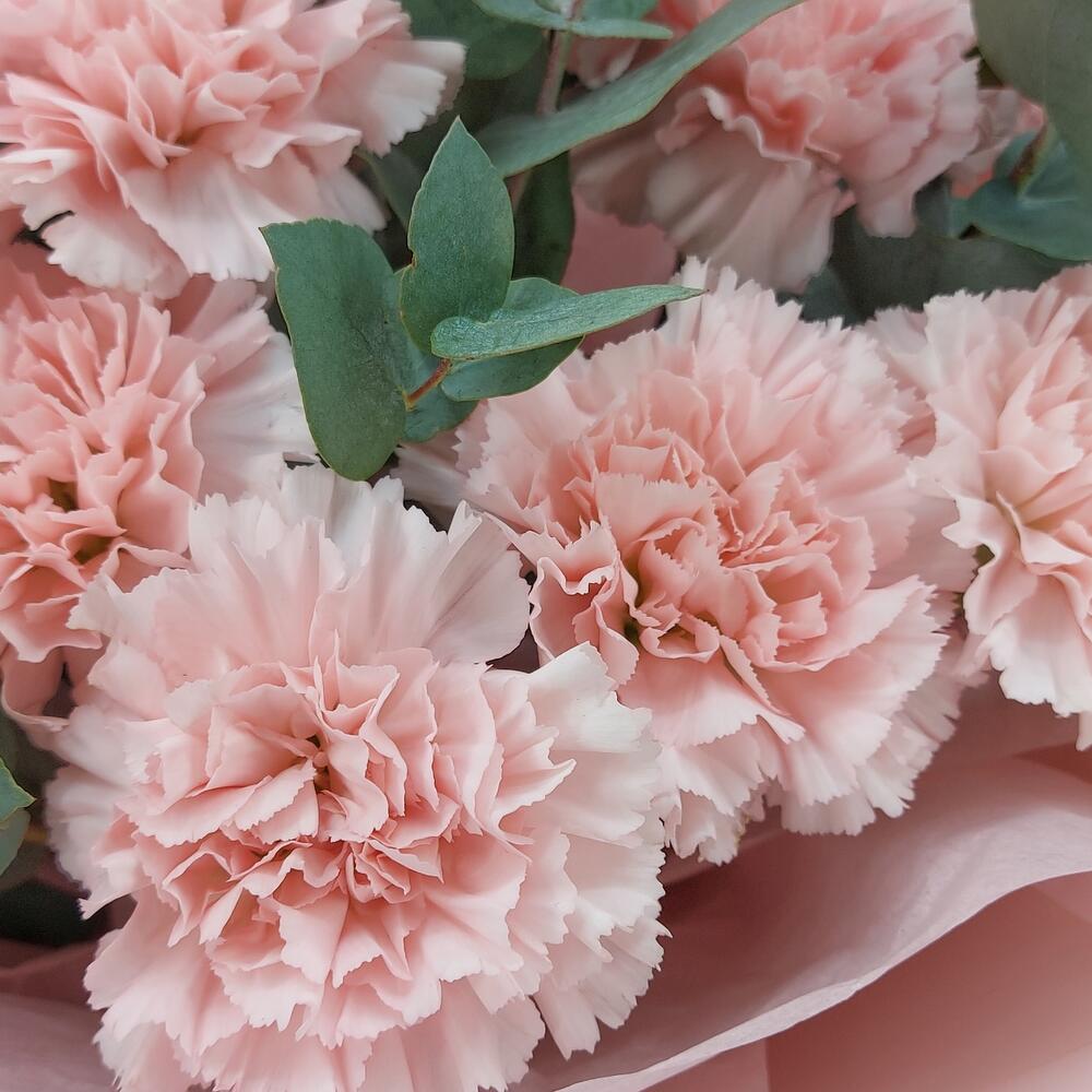 15 лавандовых гвоздик с эвкалиптом (букет N 24)