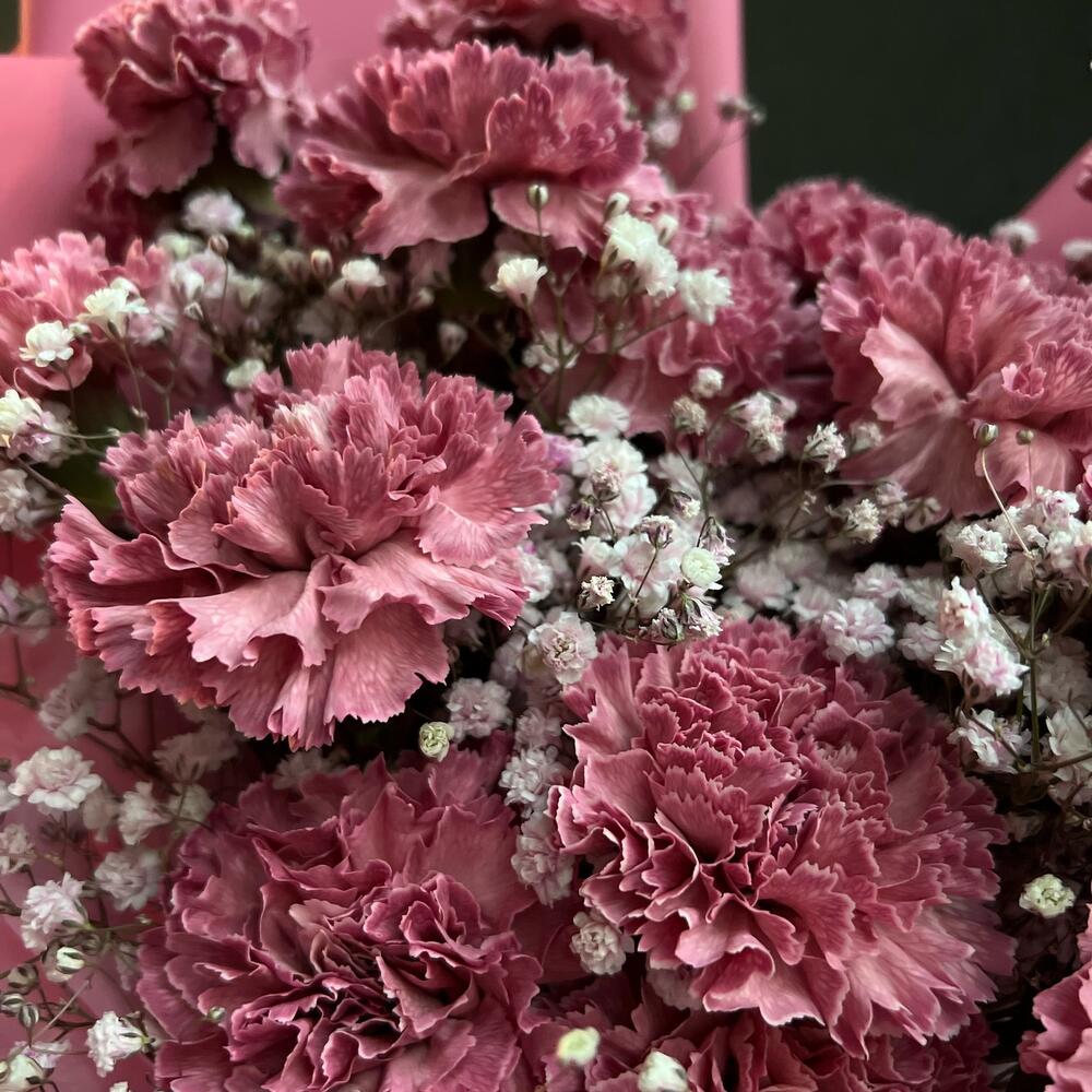 Гипсофила – 4 шт.Диантус – 17 шт.декоративная упаковка – 1 шт.Атласная лента – 1 шт.