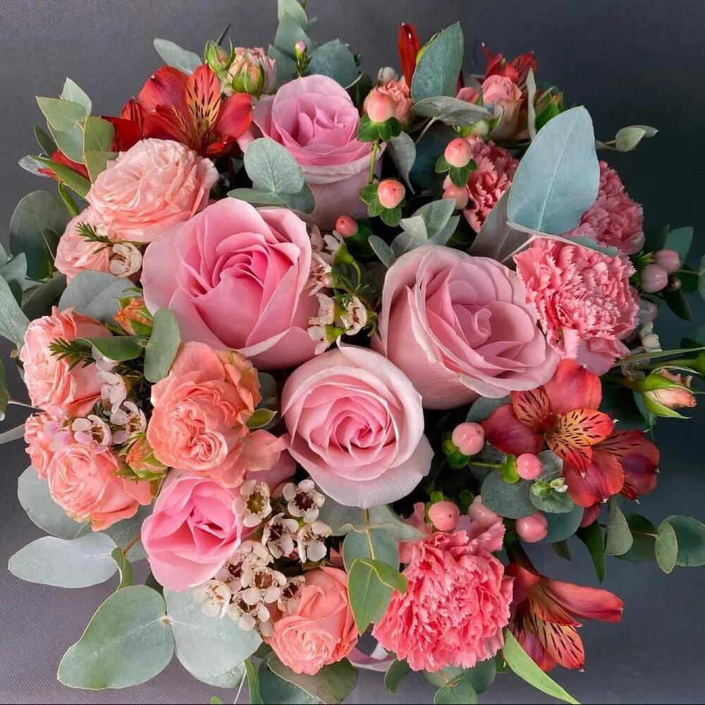 Категории: АльстромерииРозы, Гвоздики, Кустовые розы, Пионовидные розы