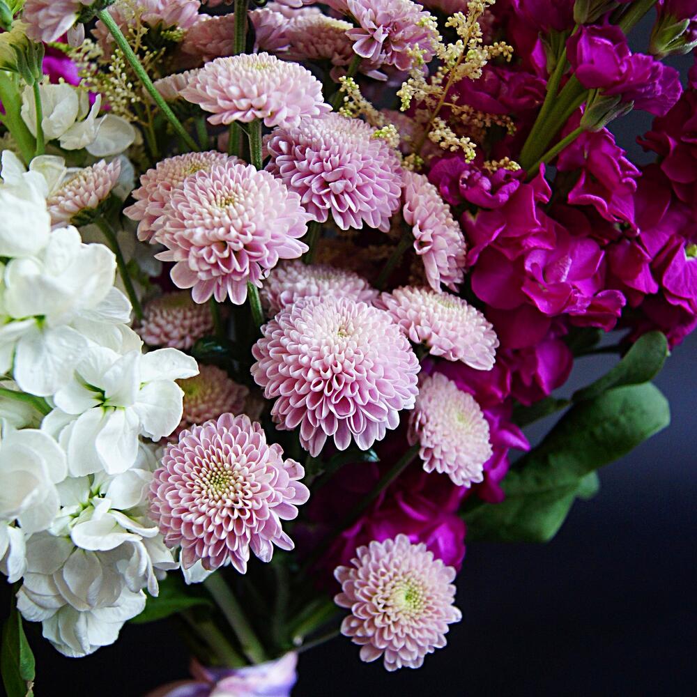 Хризантема кустовая – 4 шт.маттиола 2х оттенков – 5 шт.