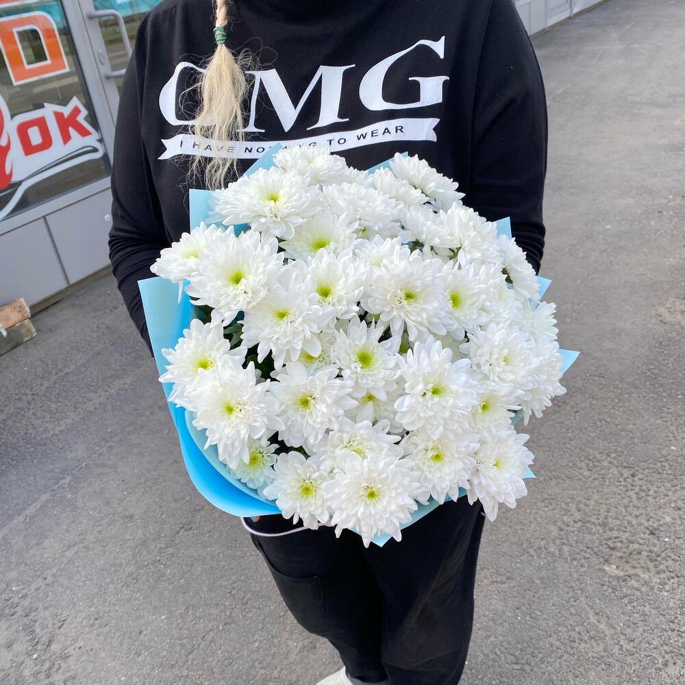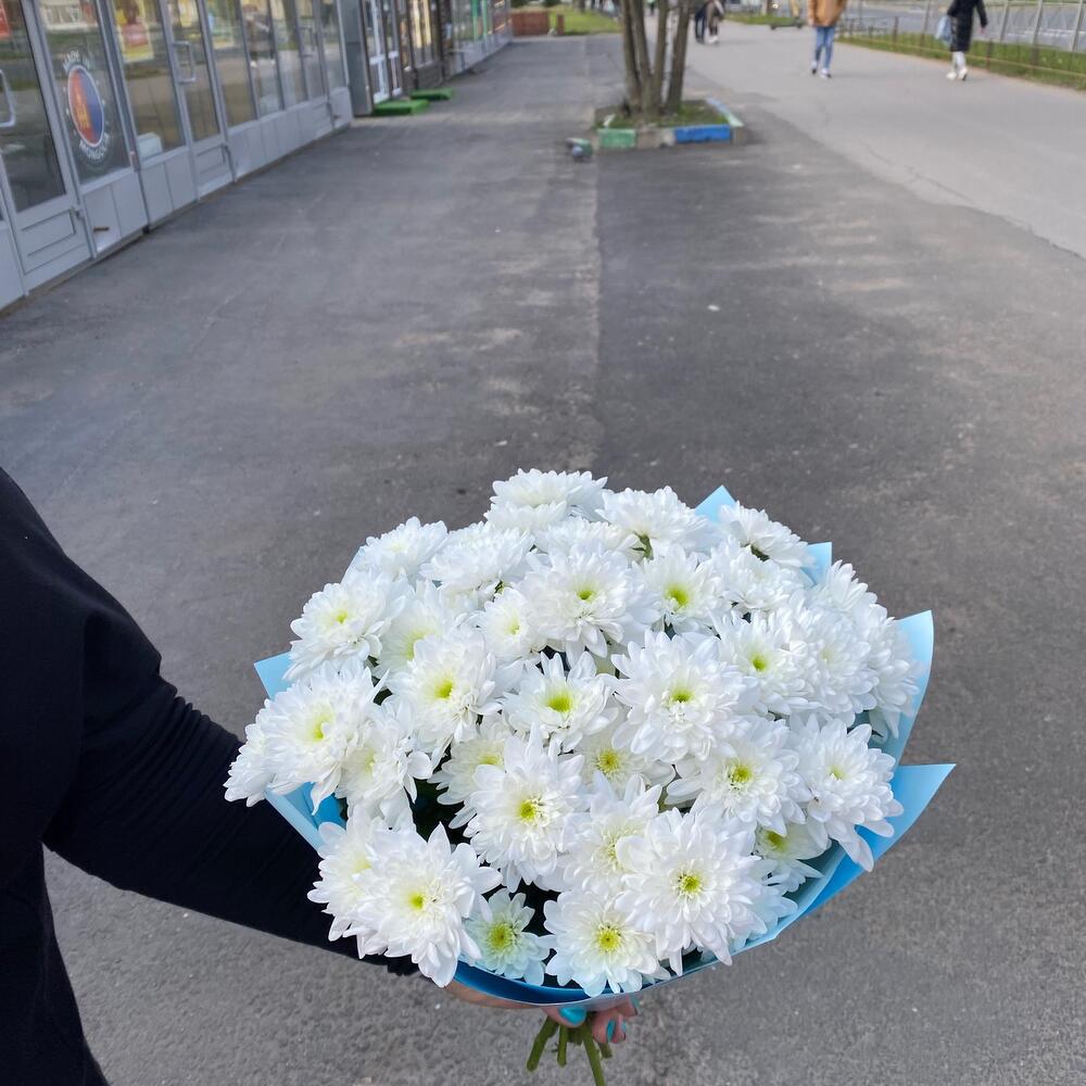 Лента – 1 шт.Хризантема кустовая – 7 шт.бумага дизайнерская – 1 шт.
