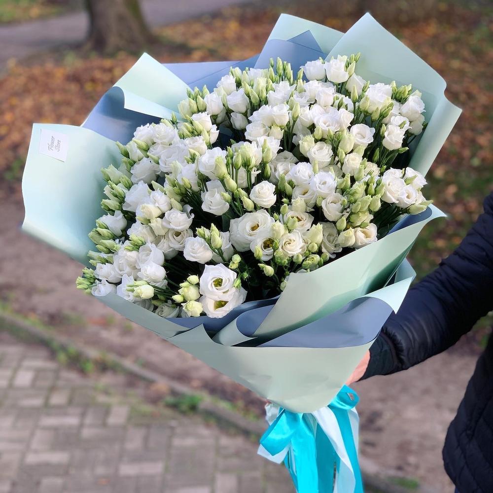 Эустома – 37 шт.цветная бумага – 1 шт.Атласная лента – 1 шт.