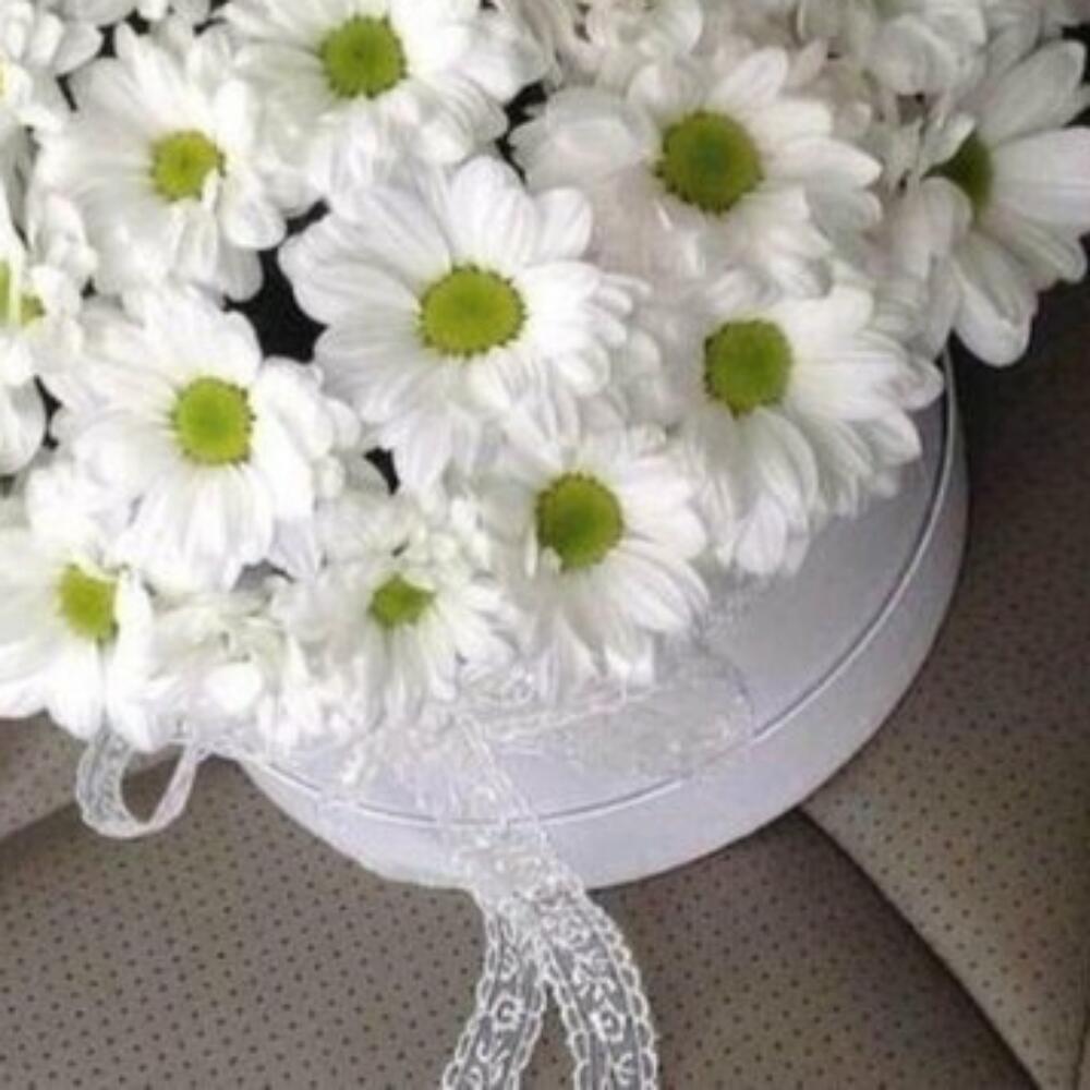 Ромашки ….что может быть милее и романтичнее ромашек Эти милые ромашки символизируют : Любовь и верность ❤️Шляпная коробка избавит вас от лишних хлопот , в поисках вазы Цветы простоят дольше , ведь в шляпной коробке витаминная губка для цветов !Ромашки для самой милой принцессы