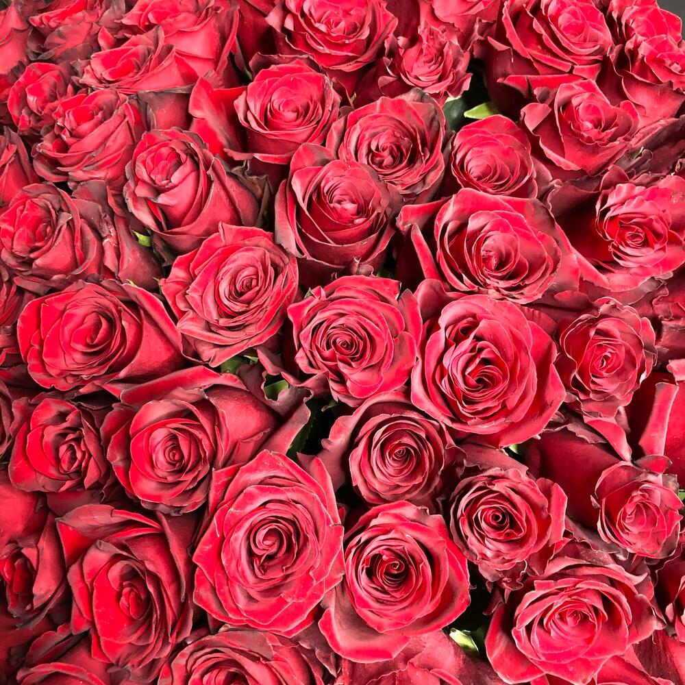 Роза Эквадор 60 см – 101 шт.Лента атласная – 3 шт.
