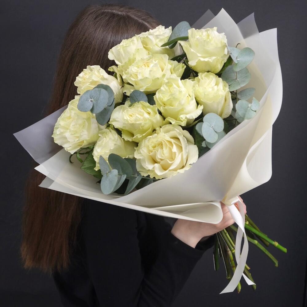 Эвкалипт – 1 шт.Роза – 11 шт.Упаковка – 1 шт.Инструкция по уходу – 1 шт.подкормка для стойкости цветов – 1 шт.