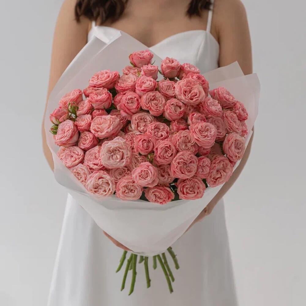 15 пионовидных кустовых роз монобукет