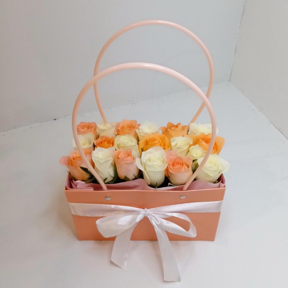 роза кения микс – 19 шт.Флористический оазис – 1 шт.Сумочка – 1 шт.