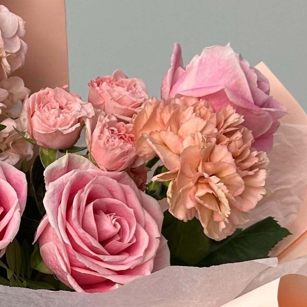 Гвоздики, Кустовые розы, Лизиантусы, Пионовидные розы, Розы