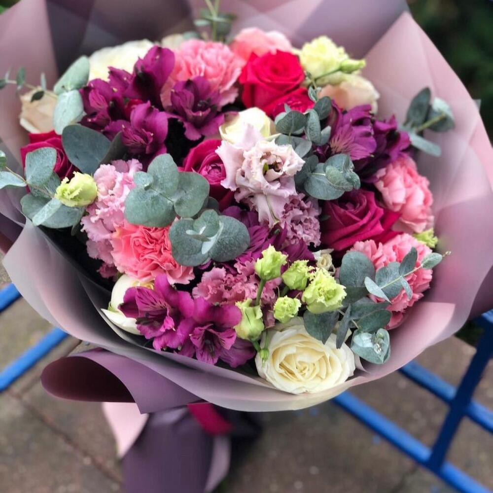Гвоздики, Кустовые розы, Лизиантусы, Пионовидные розы, Розы
