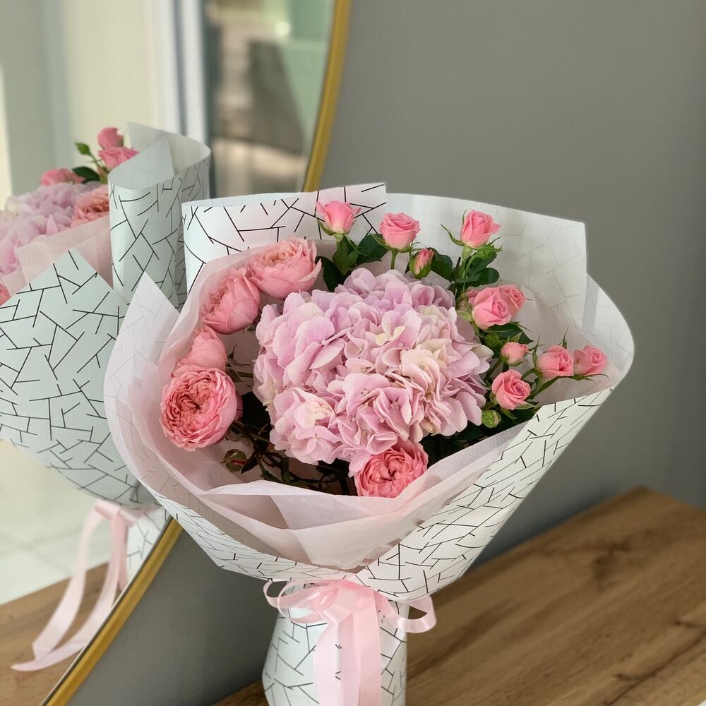 Альстромерии, Кустовые розы, Лизиантусы, Пионовидные розы, Розы, Ромашки