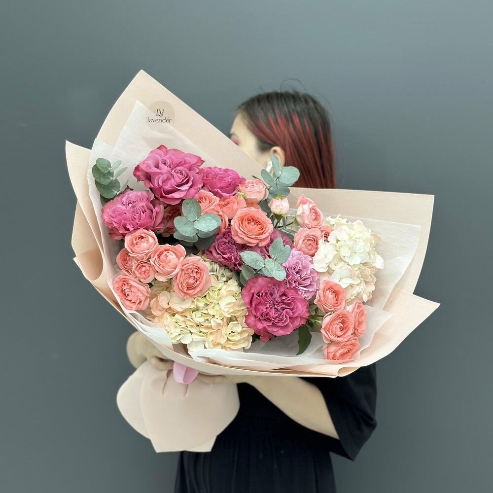 Гортензии, Кустовые розы, Лизиантусы, Пионовидные розы, Розы