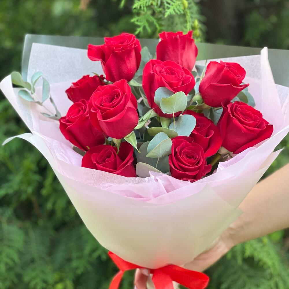 Букет из 11 Роз с эвкалиптом