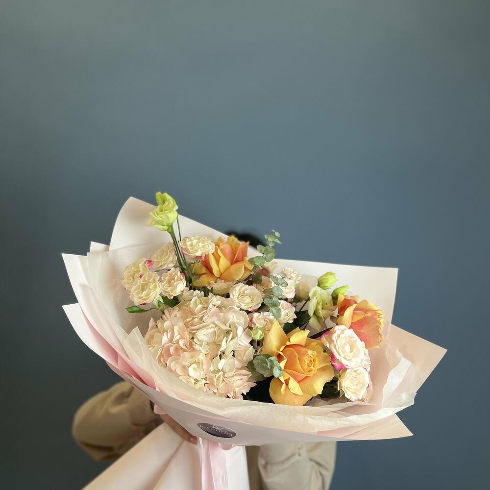 Гвоздики, Кустовые розы, Лизиантусы, Пионовидные розы, Розы
