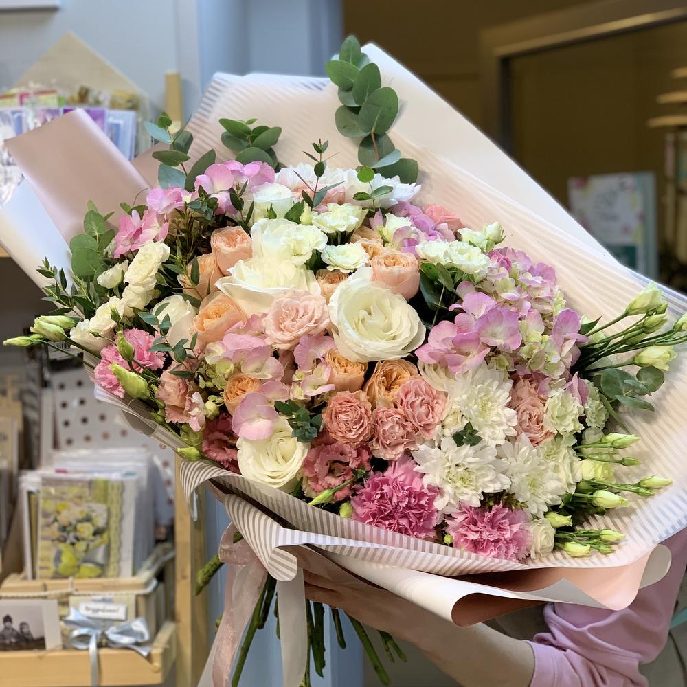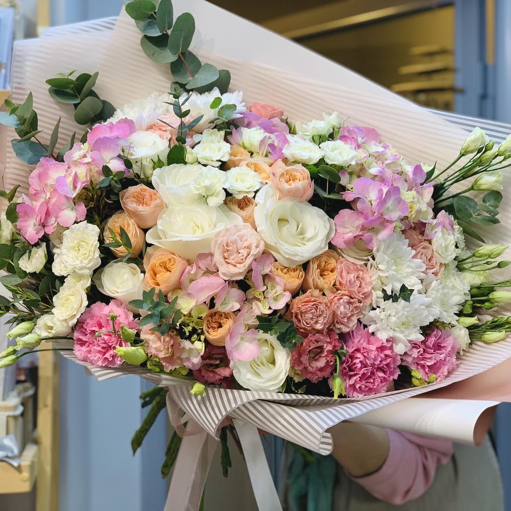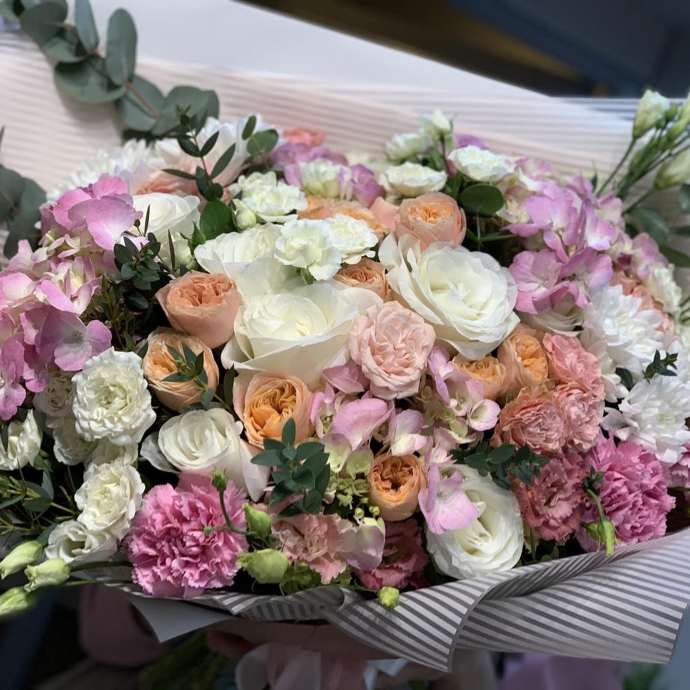 Категорий: Гвоздики, Гортензии, Кустовые розы, Лизиантусы, Розы, Хризантемы
