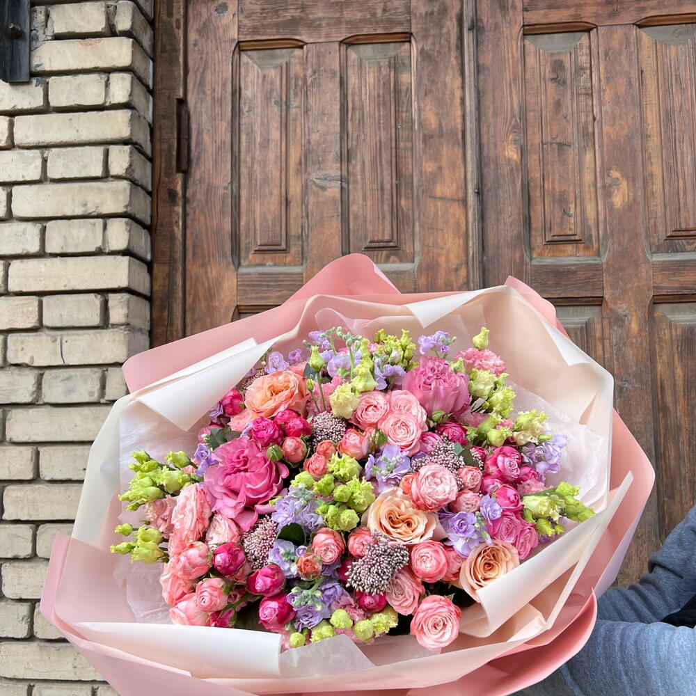 Гвоздики, Кустовые розы, Лизиантусы, Пионовидные розы, Розы