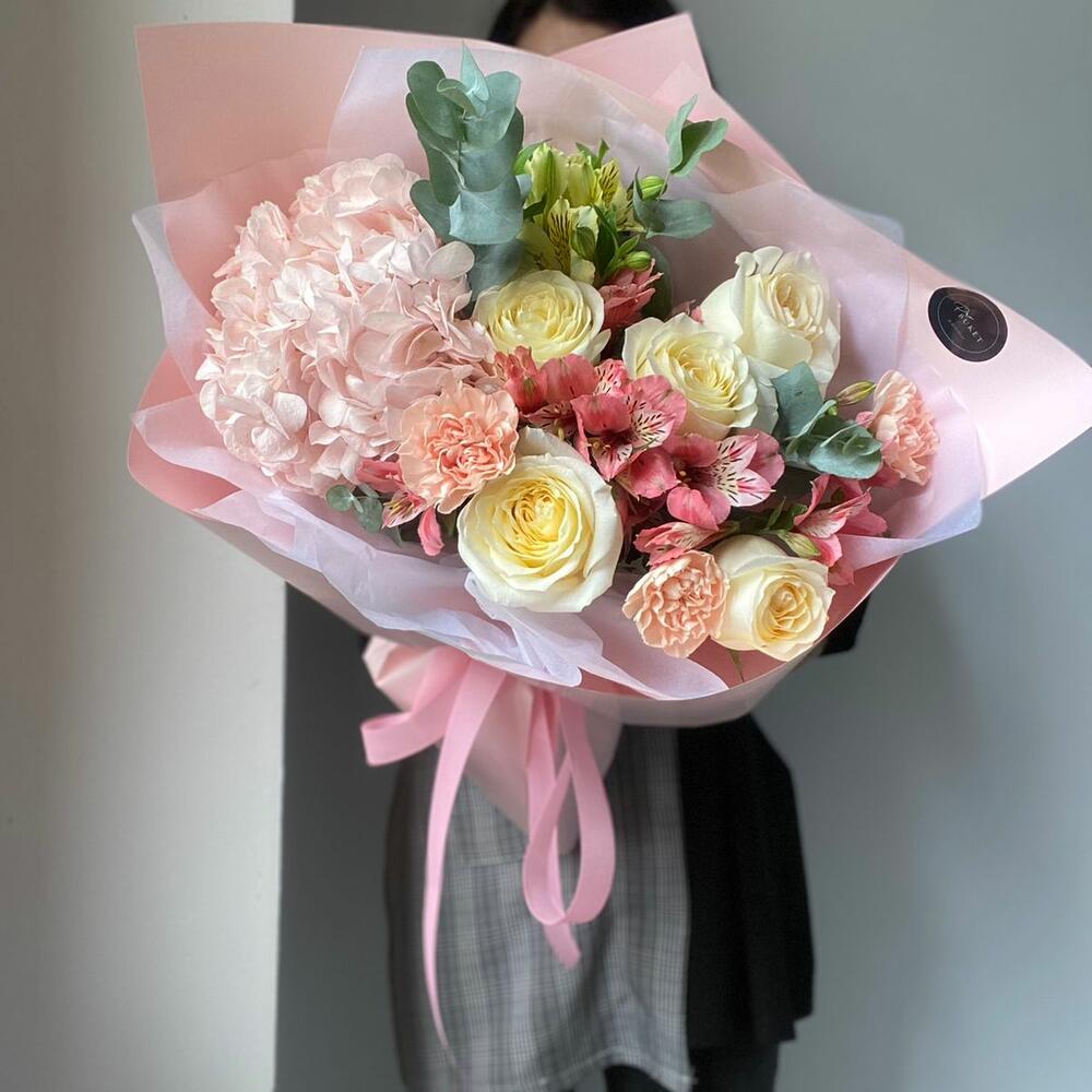 Гвоздики, Кустовые розы, Лизиантусы, Пионовидные розы, Розы