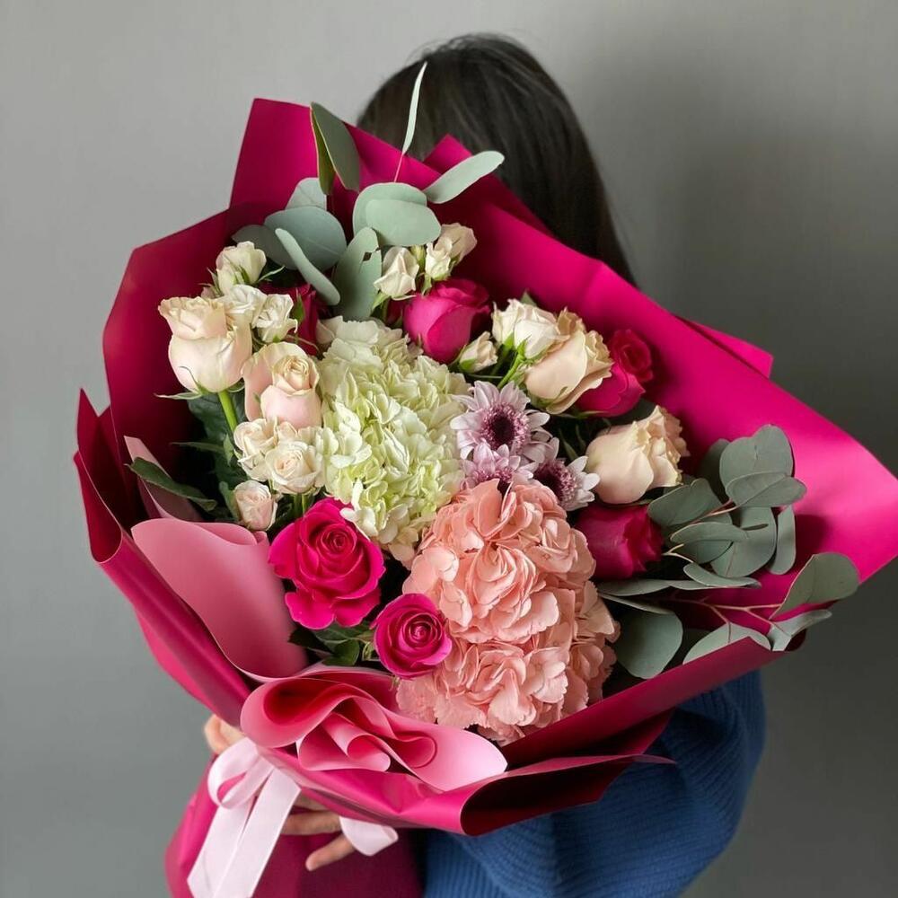 Гвоздики, Кустовые розы, Пионовидные розы, Розы