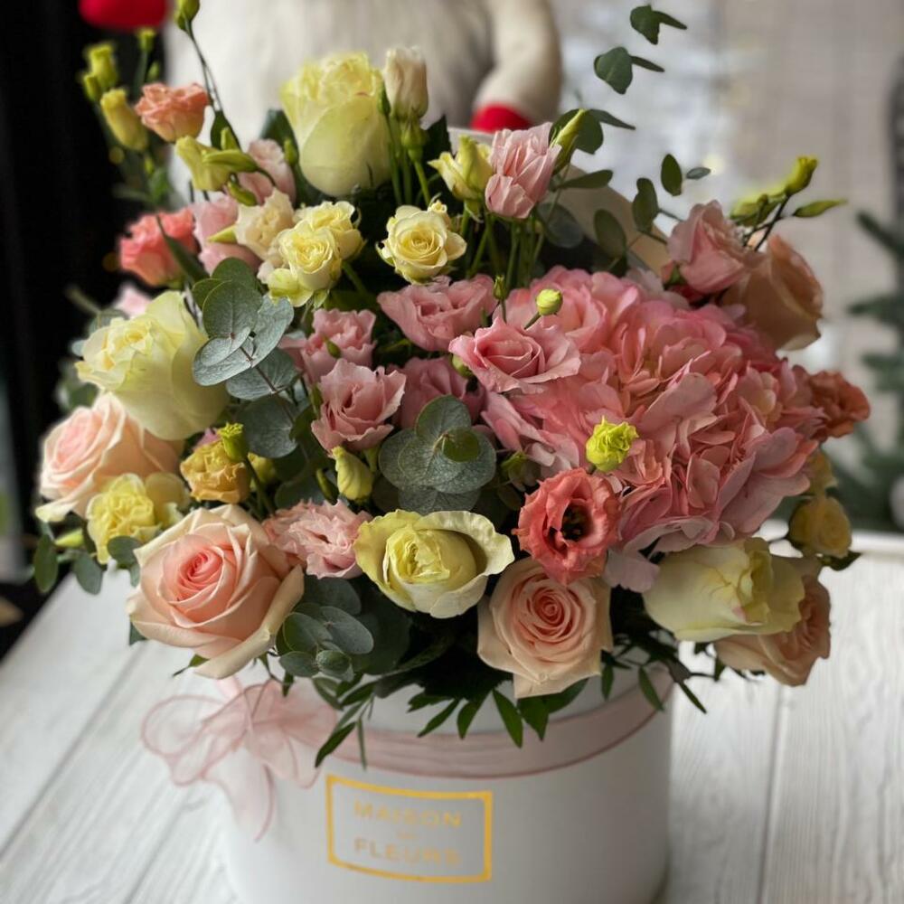 “В твоих глазах”: нежная шляпная коробка с французскими розами