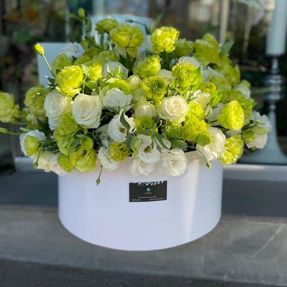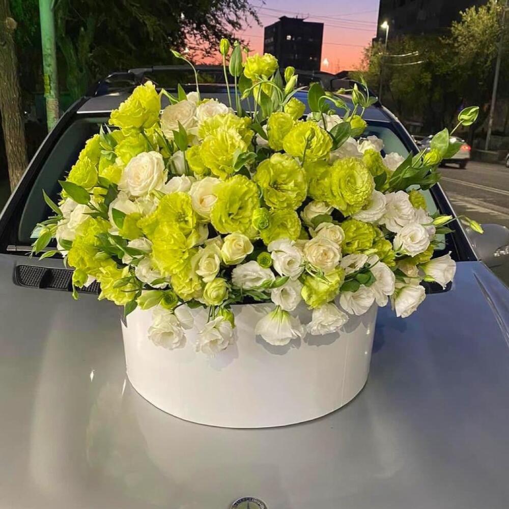 Альстромерии, Гвоздики, Кустовые розы, Лизиантусы, Розы, Хризантемы