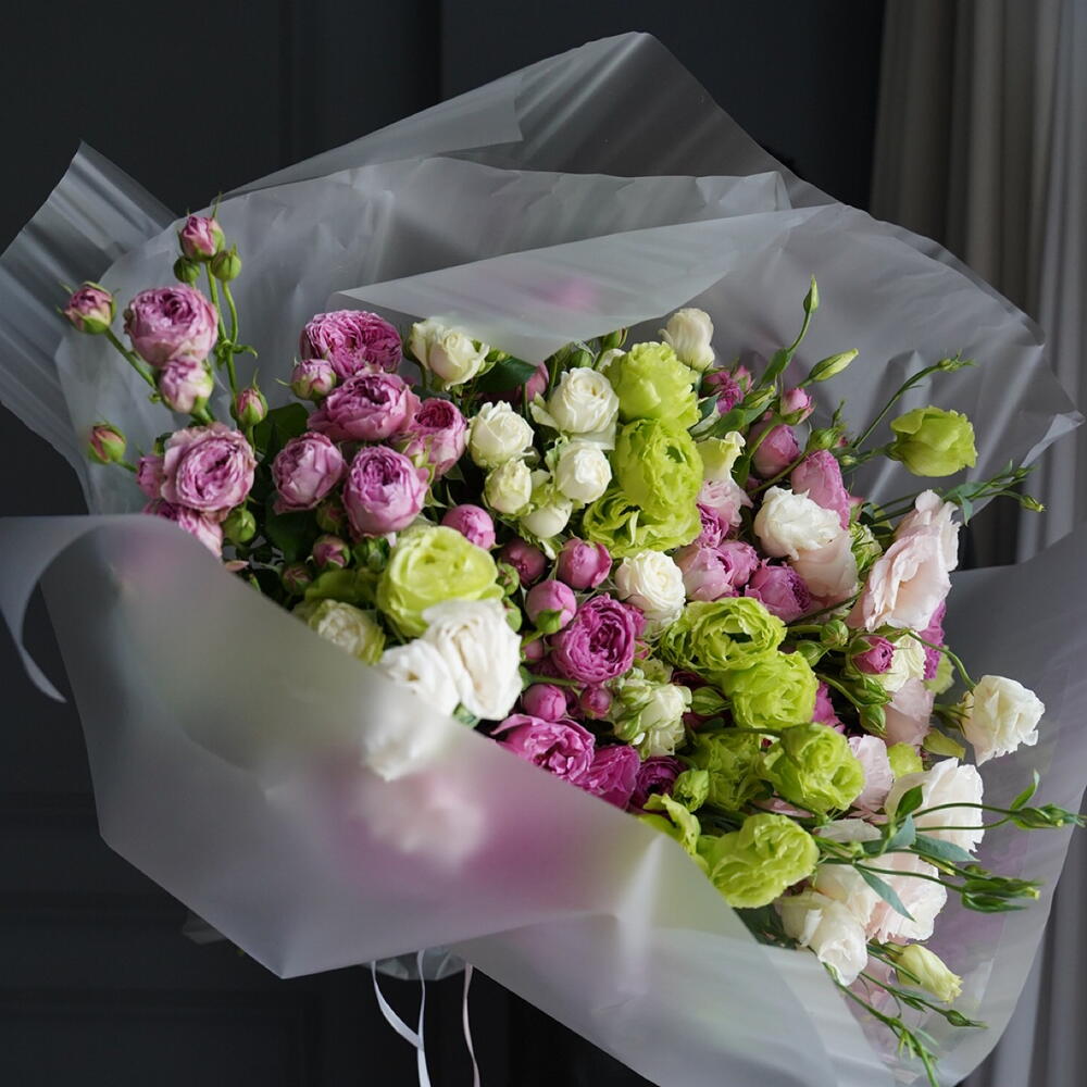 Гвоздики, Кустовые розы, Пионовидные розы, Розы