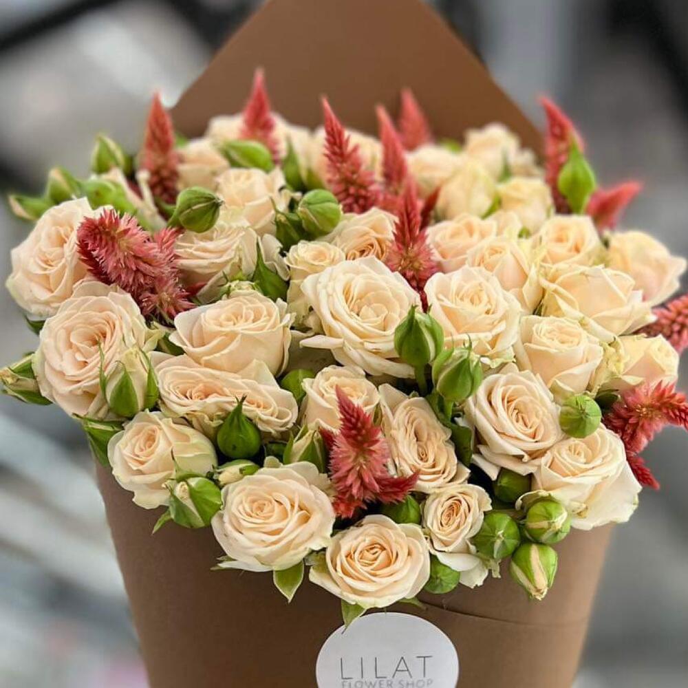 Кустовые розы, Лизиантусы, Розы, Сухоцвет