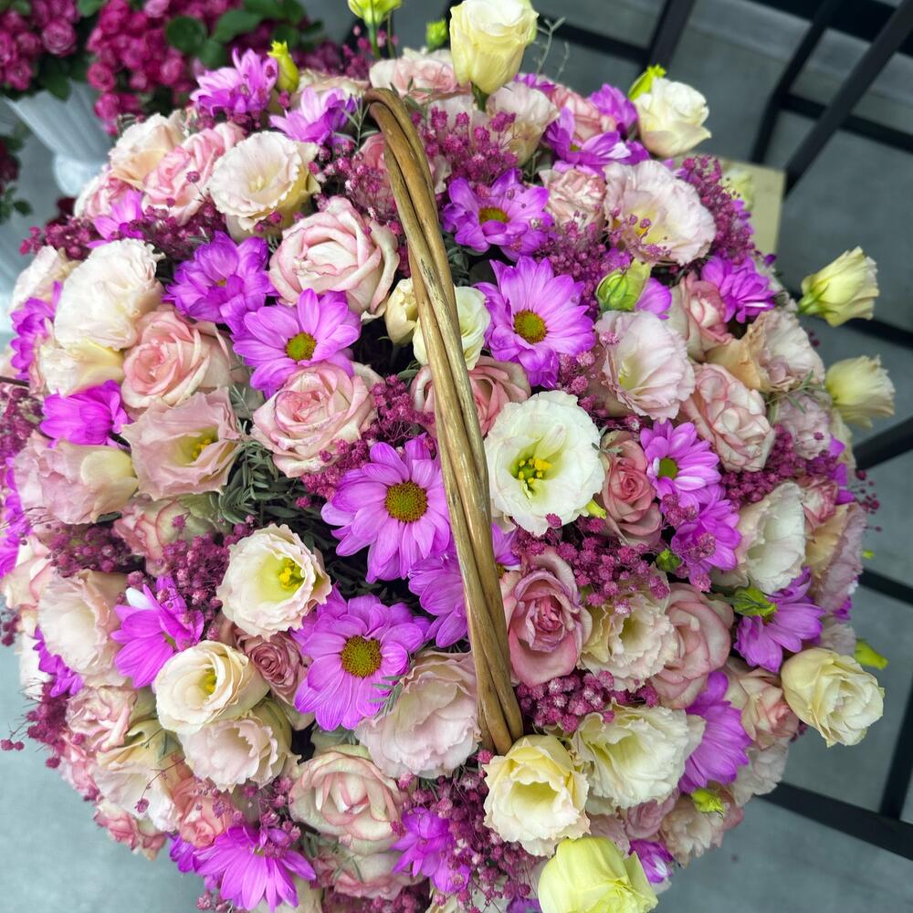 Метки: от 5000 руб, цветы в корзине