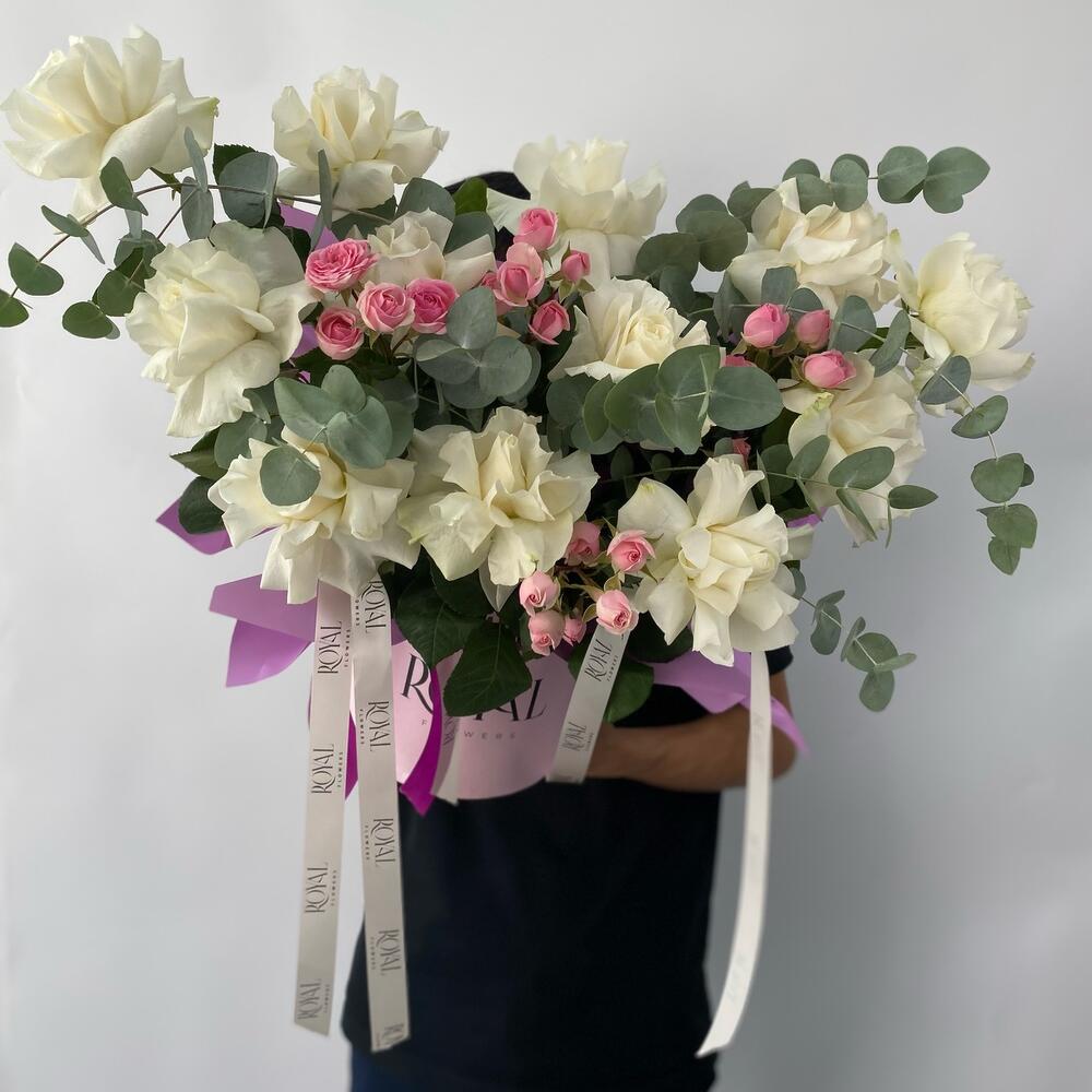 Альстромерии, Кустовые розы, Лизиантусы, Пионовидные розы, Розы, Ромашки