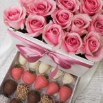 Шкатулка с цветами и клубникой в шоколаде «Розы микс»