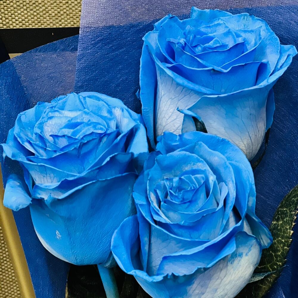 Атласная лента – 1 шт.Синяя роза – 3 шт.матовая упаковка lux – 1 шт.