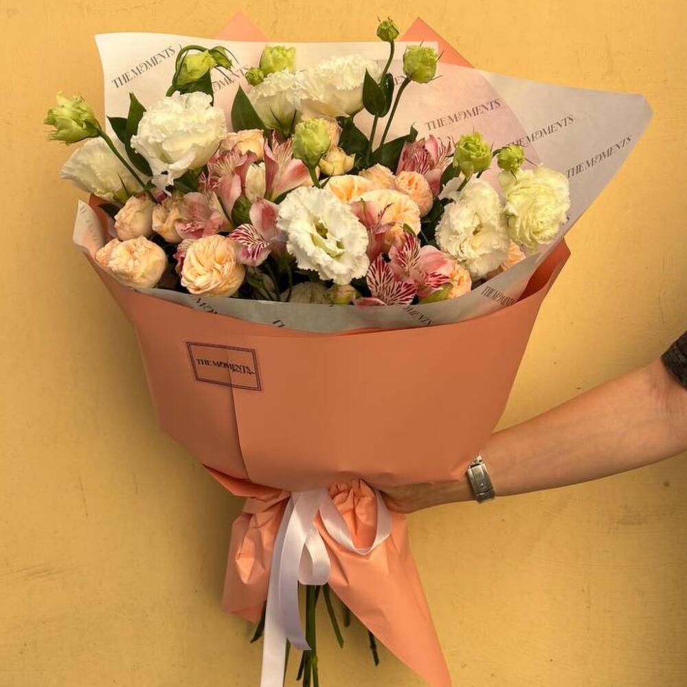 Гвоздики, Кустовые розы, Лизиантусы, Пионовидные розы, Розы